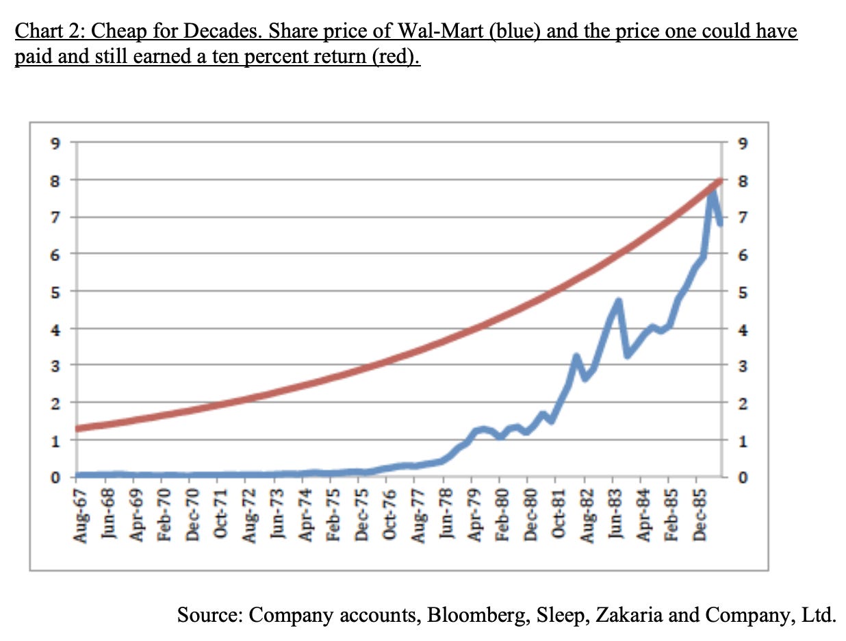 One more: take a look at the price you could pay for Wal-mart and still get a 10% annual return!