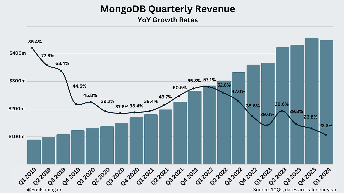 Finally, despite not having much public data, we can gather some information by examining pure-play data companies as a whole (Note: only Mongo is directly a database company here).