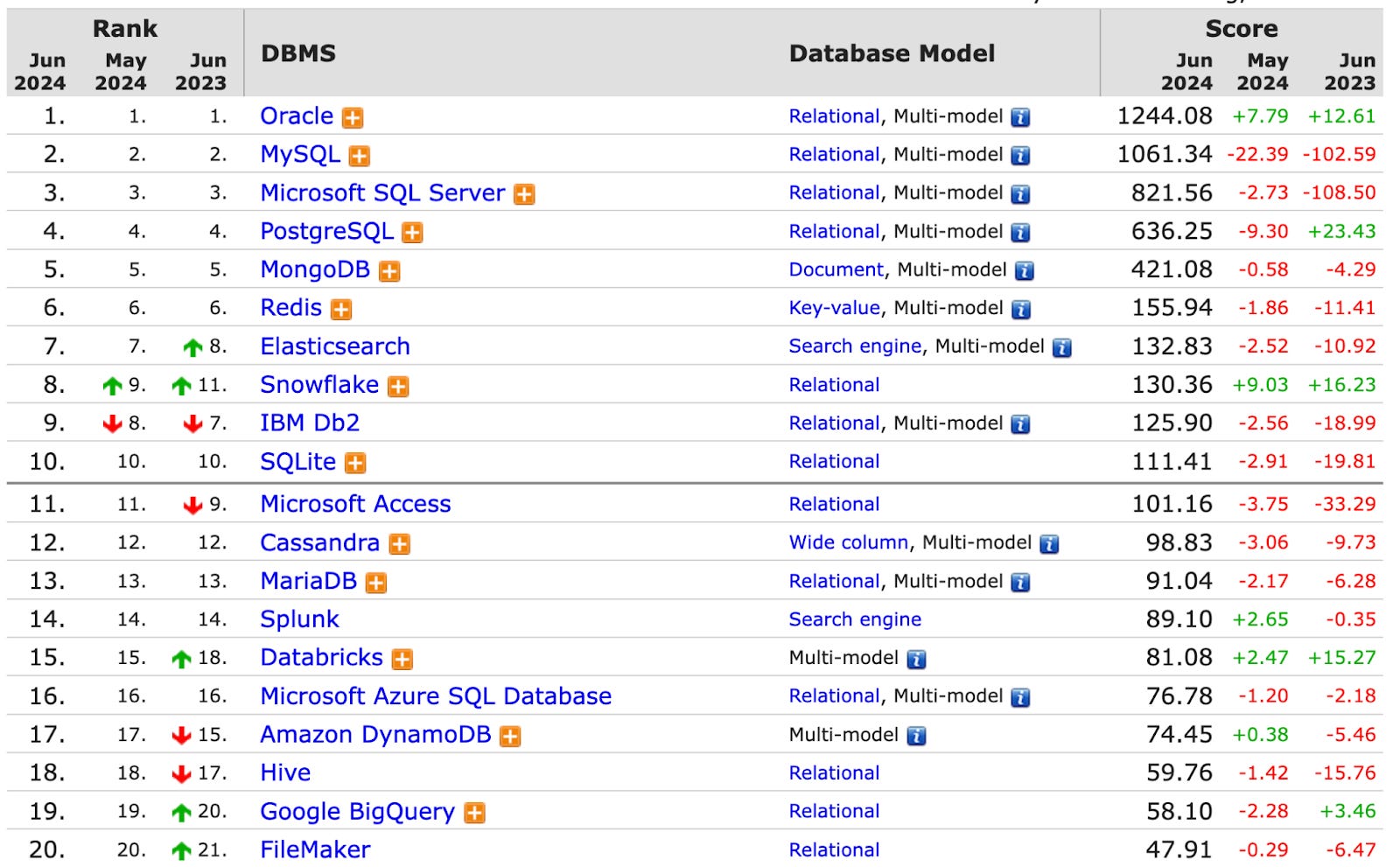 DB-Engines does a great job tracking database popularity, and we can see that here: