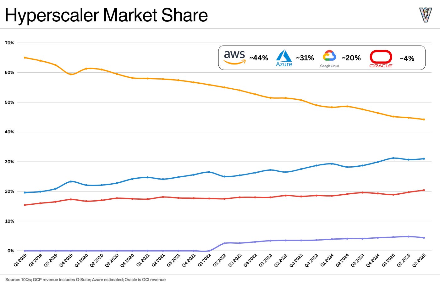 Below are some thoughts on what that shift means, along with updated data (market share, revenue growth, CapEx) from the hyperscalers.