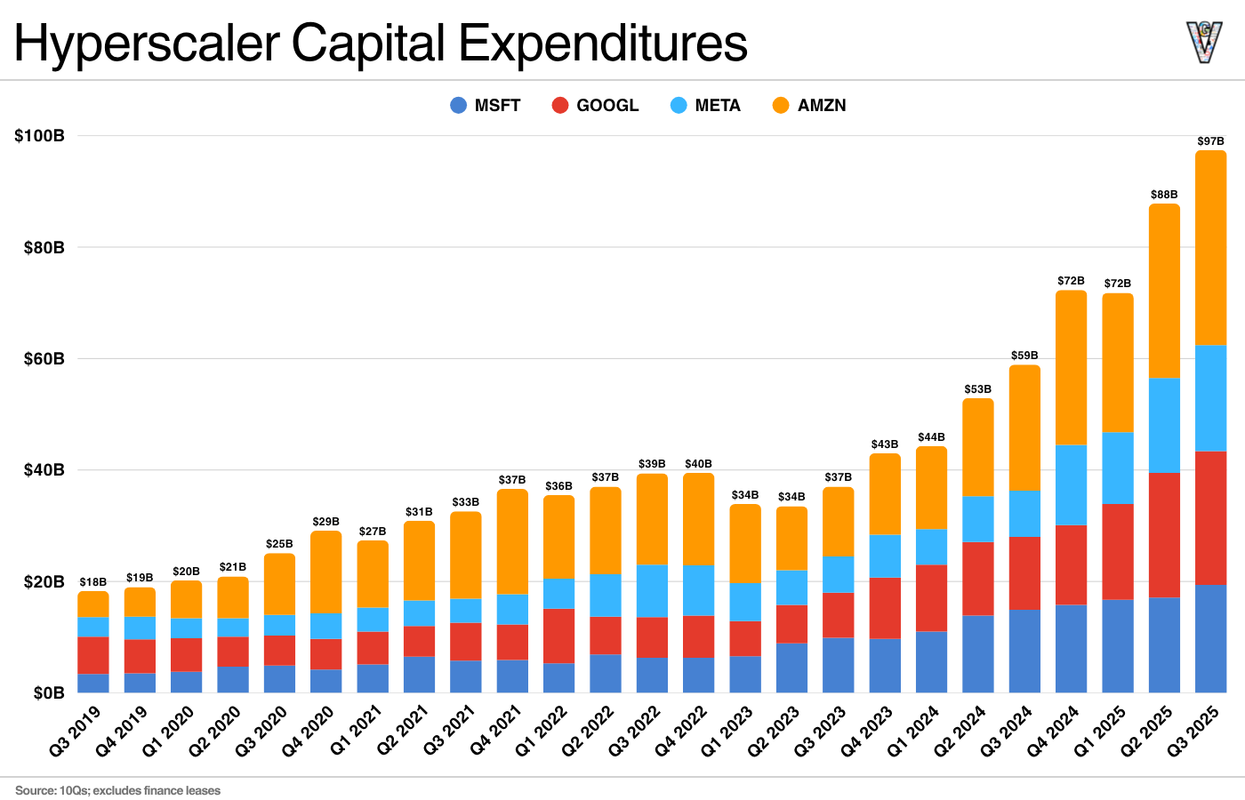Hyperscaler CapEx nearly hit $100B last quarter. If we include data center leases ($11B+ from Microsoft last quarter), it well exceeds $100B.